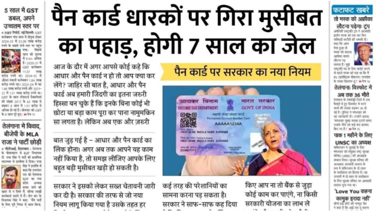 पैन कार्ड धारकों पर गिरा मुसीबत का पहाड़, होगी 7 साल का जेल | PAN Card New Rule